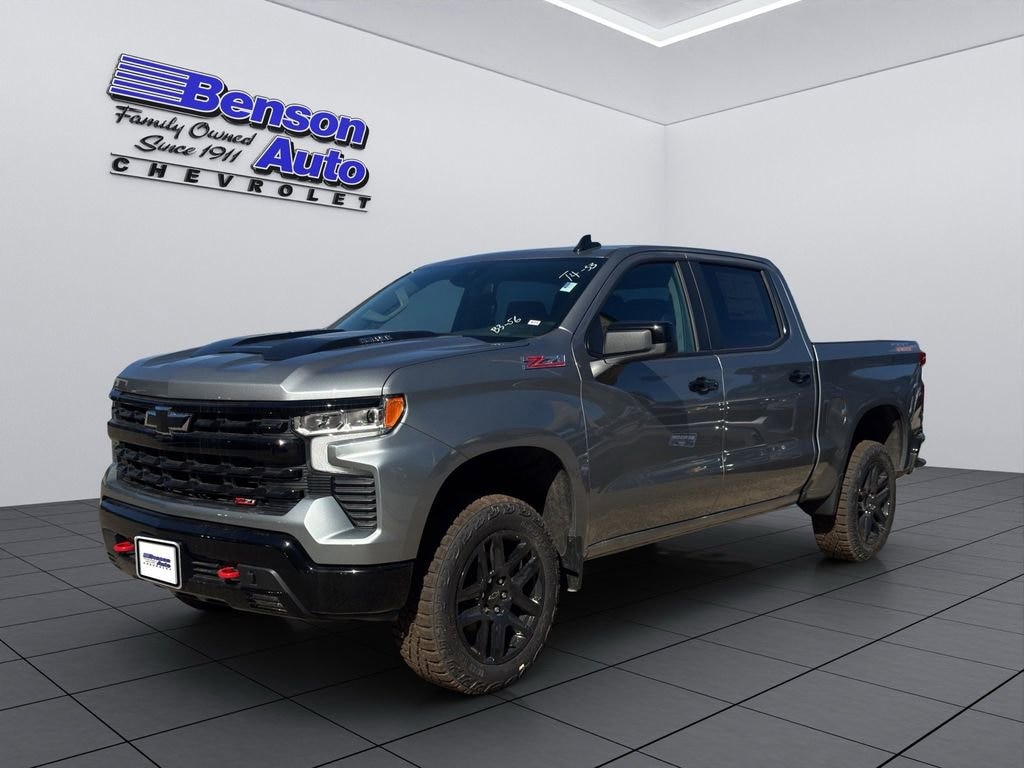 Benson Auto is proud to present you with another True Market Priced Vehicle. This 2025 Chevrolet Silverado 1500 LT Trail Boss is loaded with the following Factory Options: 10-Speed Automatic, 4WD, and Black Cloth Convenience Package (10-Way Power Driver Seat w/Lumbar, 120-Volt Bed Mounted Power Outlet, 120-Volt Interior Power Outlet, Dual Rear USB Ports (Charge Only), Dual-Zone Automatic Climate Control, Electric Rear-Window Defogger, Heated Driver & Front Outboard Passenger Seats, Heated Steering Wheel, Keyless Open & Start, LED Cargo Area Lighting, Manual Tilt/Telescoping Steering Column, Remote Vehicle Starter System, Theft Deterrent System (Unauthorized Entry), and Wrapped Steering Wheel), Preferred Equipment Group 2LT (12.3 Multicolor Reconfigurable Digital Display, 6-Speaker Audio System, All-Weather Floor Liner (LPO) (AAK), Auto-Locking Rear Differential, Bluetooth® For Phone, Color-Keyed Carpeting Floor Covering, Deep-Tinted Glass, Electronic Cruise Control, EZ Lift Power Lock & Release Tailgate, Front LED Fog Lamps, HD Rear Vision Camera, Heated Power-Adjustable Outside Mirrors, High Gloss Black Mirror Caps, Inside Rear-View Mirror w/Tilt, Integrated Trailer Brake Controller, OnStar Services Capable, Performance Red Recovery Hooks, Power Front Windows w/Driver Express Up/Down, Power Front Windows w/Passenger Express Down, Power Rear Windows w/Express Down, Rear 60/40 Folding Bench Seat (Folds Up), SiriusXM w/360L Trial Subscription, Standard Tailgate, Steering Wheel Audio Controls, Teen Driver, Tire Pressure Monitoring System, and Wi-Fi Hot Spot Capable), Protection Package (Chevytec Spray-On Black Bedliner and Rear Wheelhouse Liners), Suspension Package (Heavy-Duty Air Filter and Hill Descent Control), Trailering Package (Hitch Guidance), 10-Speed Automatic, 4WD, Black Cloth, 2 USB Data Ports, 220 Amp Alternator, 4-Wheel Disc Brakes, 40/20/40 Front Split-Bench Seat, 6 Speakers, ABS brakes, Air Conditioning, Alloy wheels, AM/FM radio: SiriusXM with 360L, Apple CarPlay/Android Auto, Auto High-beam Headlights, Automatic Emergency Braking, Automatic temperature control, Brake assist, Cloth Seat Trim, Compass, Delay-off headlights, Driver door bin, Driver vanity mirror, Dual Exhaust w/Polished Outlets, Dual front impact airbags, Dual front side impact airbags, Electronic Stability Control, Electronic Transmission Range Selector Shifter, Emergency communication system: OnStar, Engine Block Heater, Floor Mounted Center Console, Following Distance Indicator, Forward Collision Alert, Front anti-roll bar, Front Bucket Seats, Front Center Armrest w/Storage, Front dual zone A/C, Front fog lights, Front License Plate Kit, Front Pedestrian Braking, Front reading lights, Front wheel independent suspension, Fully automatic headlights, Heated door mirrors, Heated front seats, Heated steering wheel, Illuminated entry, IntelliBeam Automatic High Beam On/Off, Lane Keep Assist w/Lane Departure Warning, Low tire pressure warning, Occupant sensing airbag, Outside temperature display, Overhead airbag, Overhead console, Panic alarm, Passenger door bin, Passenger vanity mirror, Power door mirrors, Power driver seat, Power steering, Power windows, Premium audio system: Chevrolet Infotainment 3 Premium, Radio data system, Radio: Chevrolet Infotainment 3 Premium System, Rear reading lights, Rear step bumper, Rear window defroster, Remote keyless entry, Security system, Single Outlet Exhaust, Speed control, Speed-sensing steering, Split folding rear seat, Steering wheel mounted audio controls, Tachometer, Telescoping steering wheel, Tilt steering whee