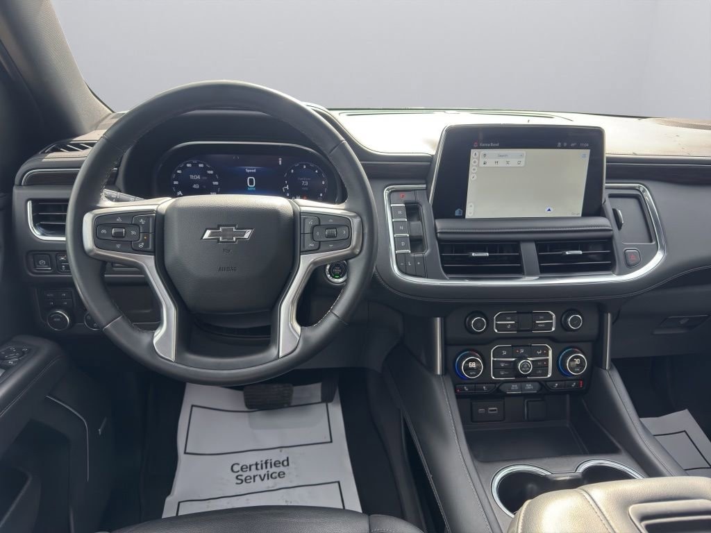 The interior of this Tahoe is equally impressive, boasting a host of luxurious amenities. The Bose 9-speaker audio system, SiriusXM Radio with 360L, and wireless charging keep you entertained and connected on the go. The heated steering wheel, heated front and second-row seats, and dual-zone automatic climate control ensure everyone travels in comfort.